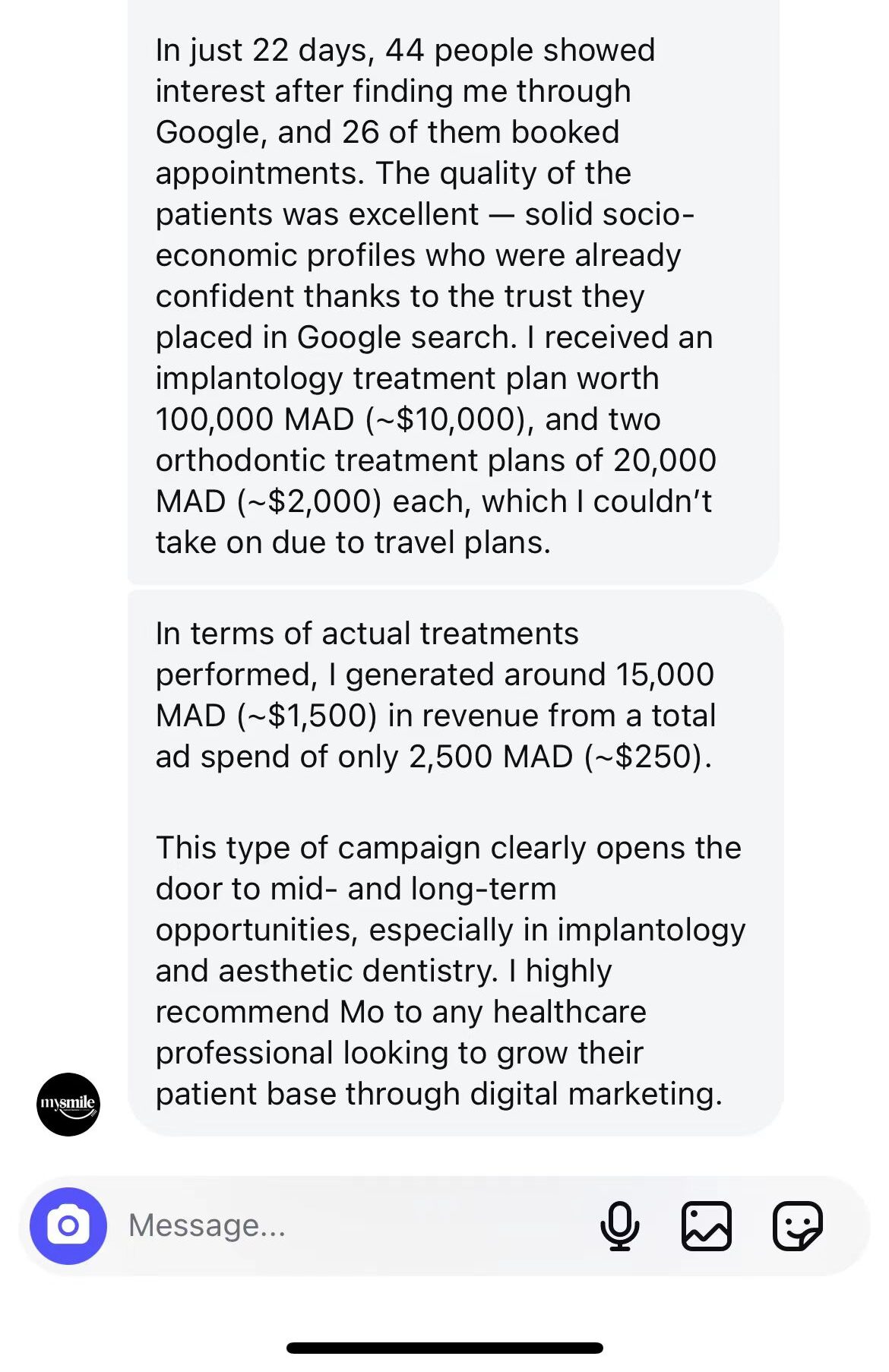 In 3 weeks, we generated $15,500 in revenue, 26 new patients, and 6X ROI on a $250 ad spend.